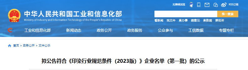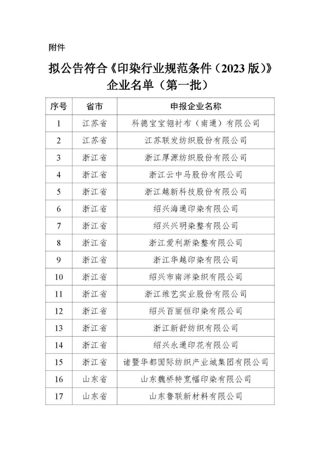拟公告符合《印染行业规范条件(2023版)》企业名单(第一批)的公示