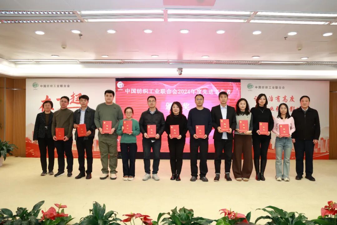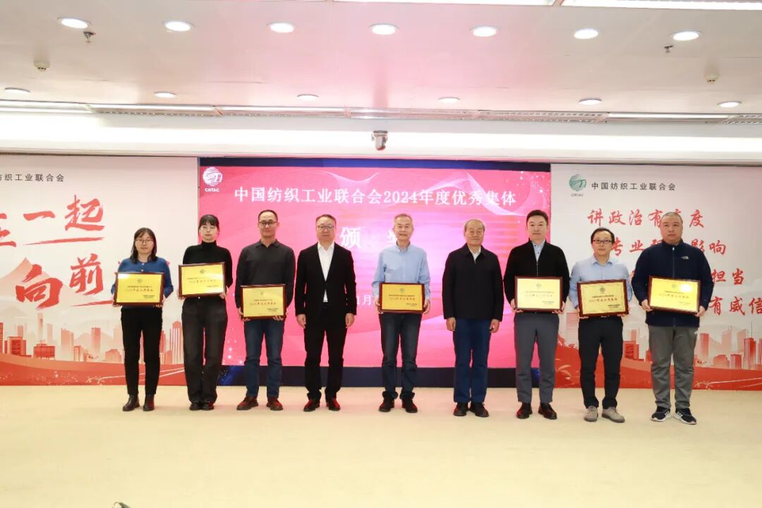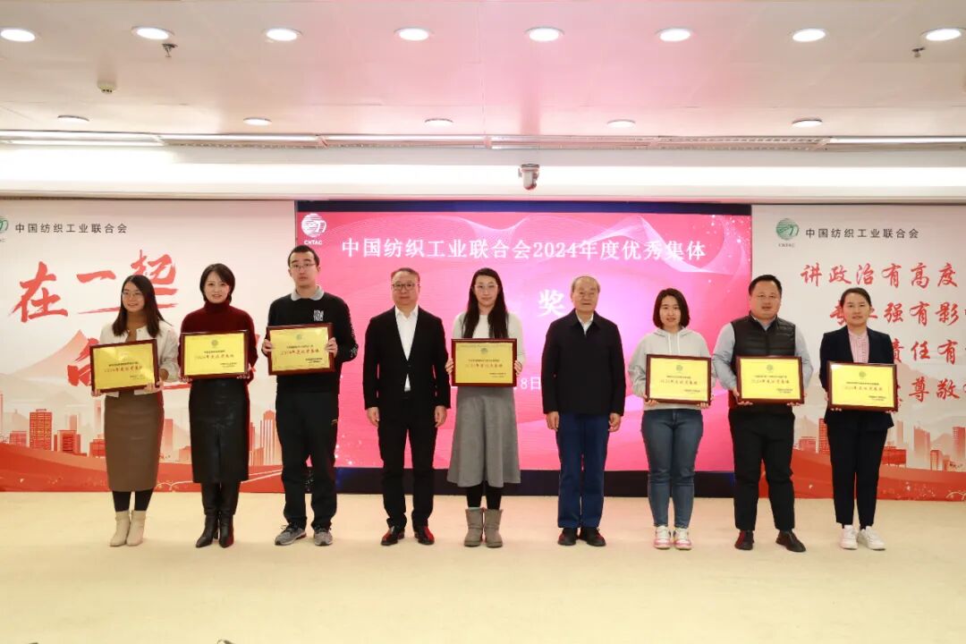 最后,大会举行了隆重的表彰仪式。中国纺联副会长徐迎新宣读《关于表彰中国纺织工业联合会2024年度先进单位优秀集体和先进工作者的决定》。中国纺织工业联合会科技发展部等7家单位获先进单位称号,中国棉纺织行业协会市场发展部等14个部门获优秀集体称号,周晓松等59名同志获先进工作者称号。中国纺联年度先进单位